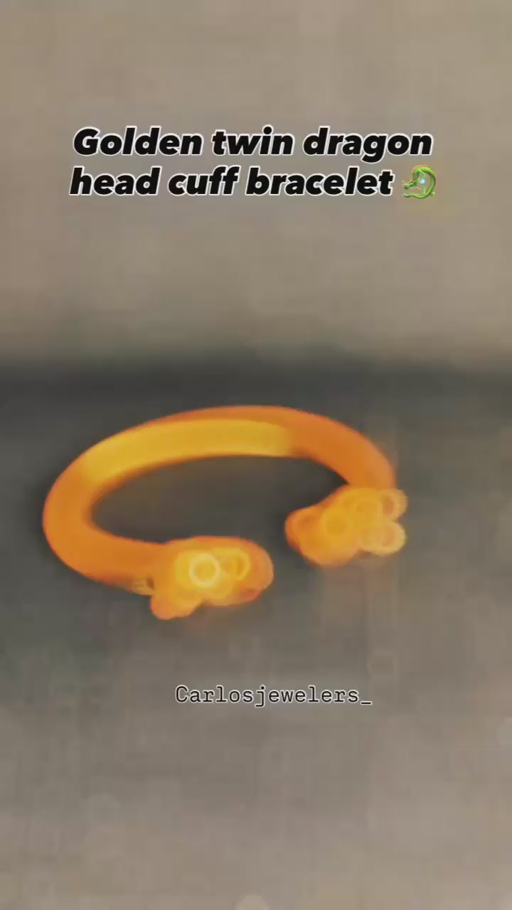 Golden Twin Dragon Head Cuff Bracelet & Gold-Tone Textured Rings